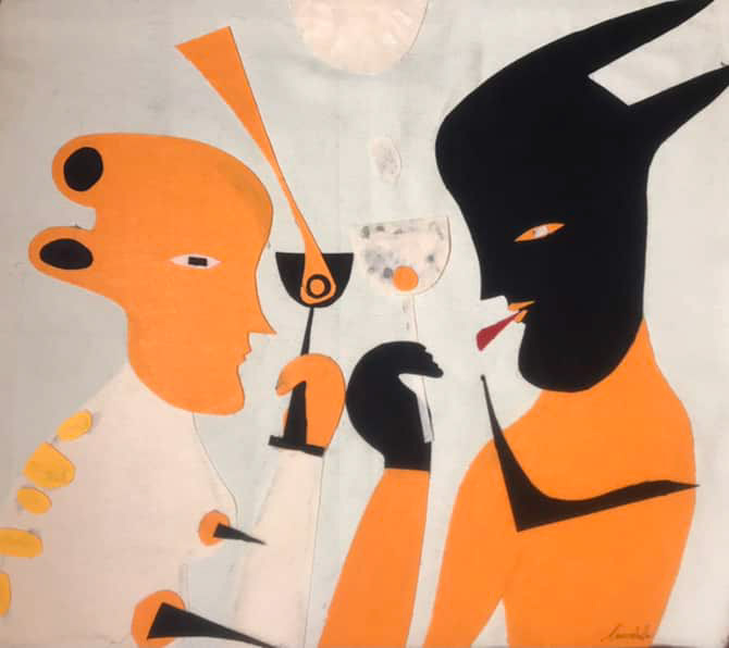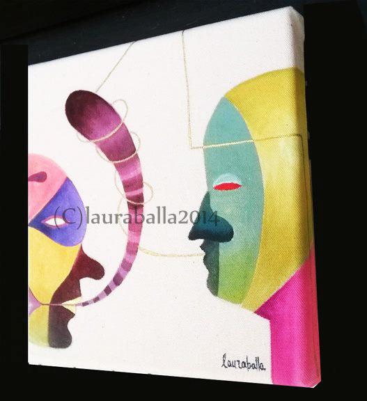 (collezione privata) COPPIA A CAVALLO acrilico e pigmento carta applicata su tavola 100x80 cm, con cornice