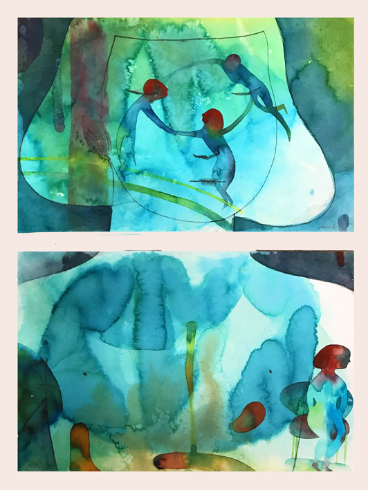 SPAZIO LIQUIDO 9, 30x30cm ecoline su carta applicata su cartonlegno (non esporlo a fonti luminose)