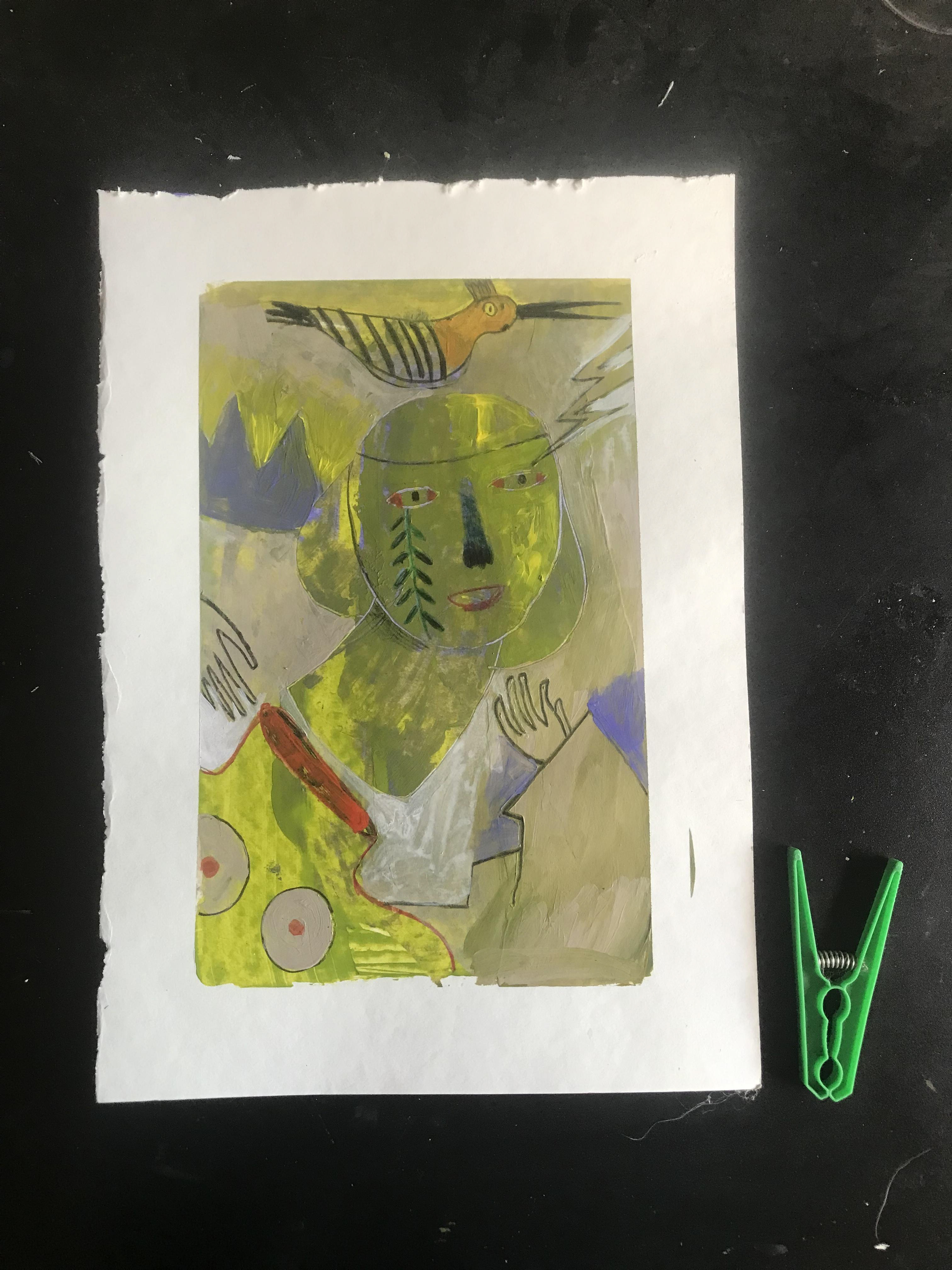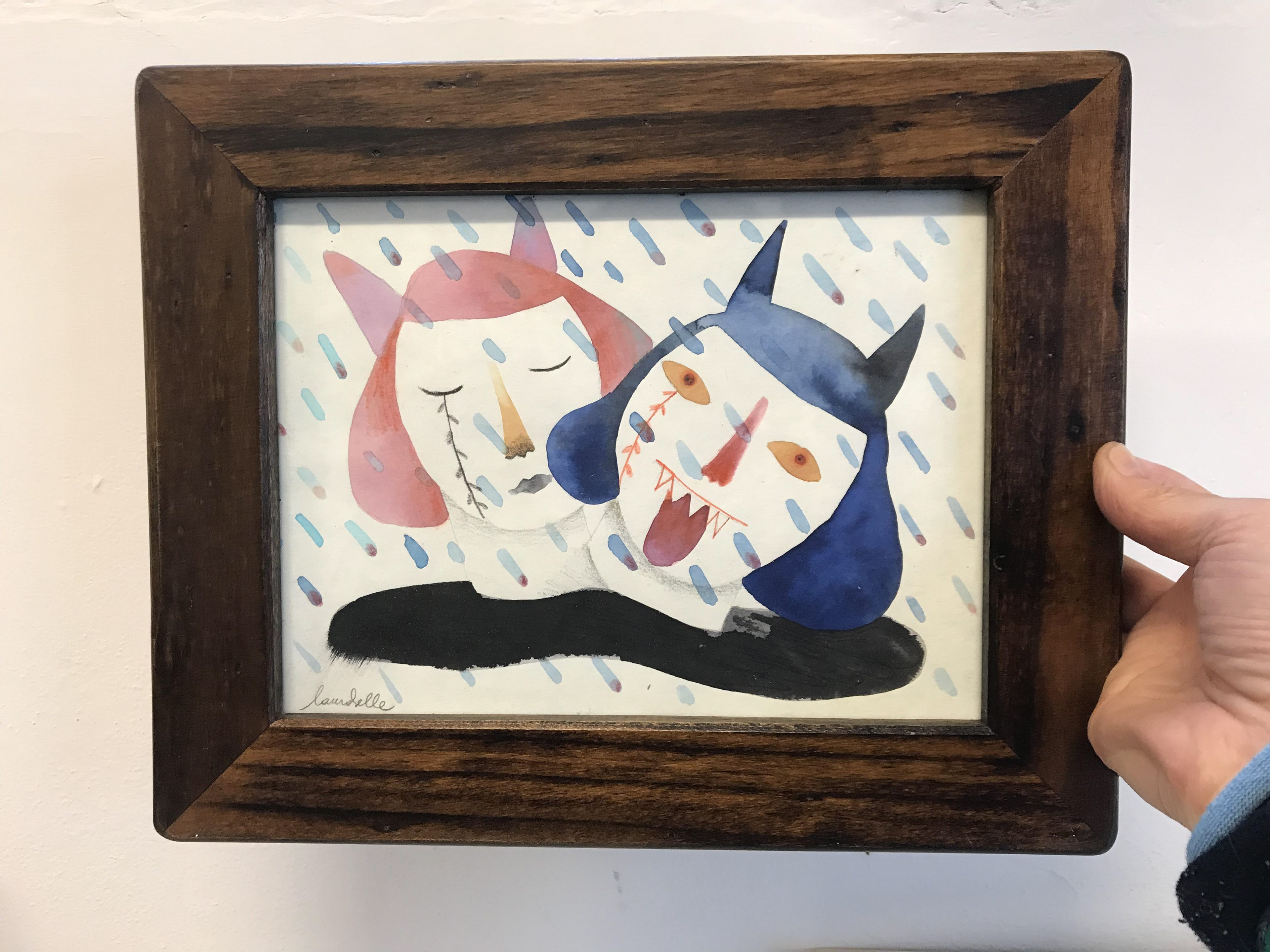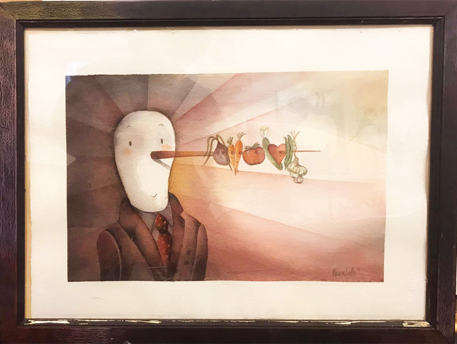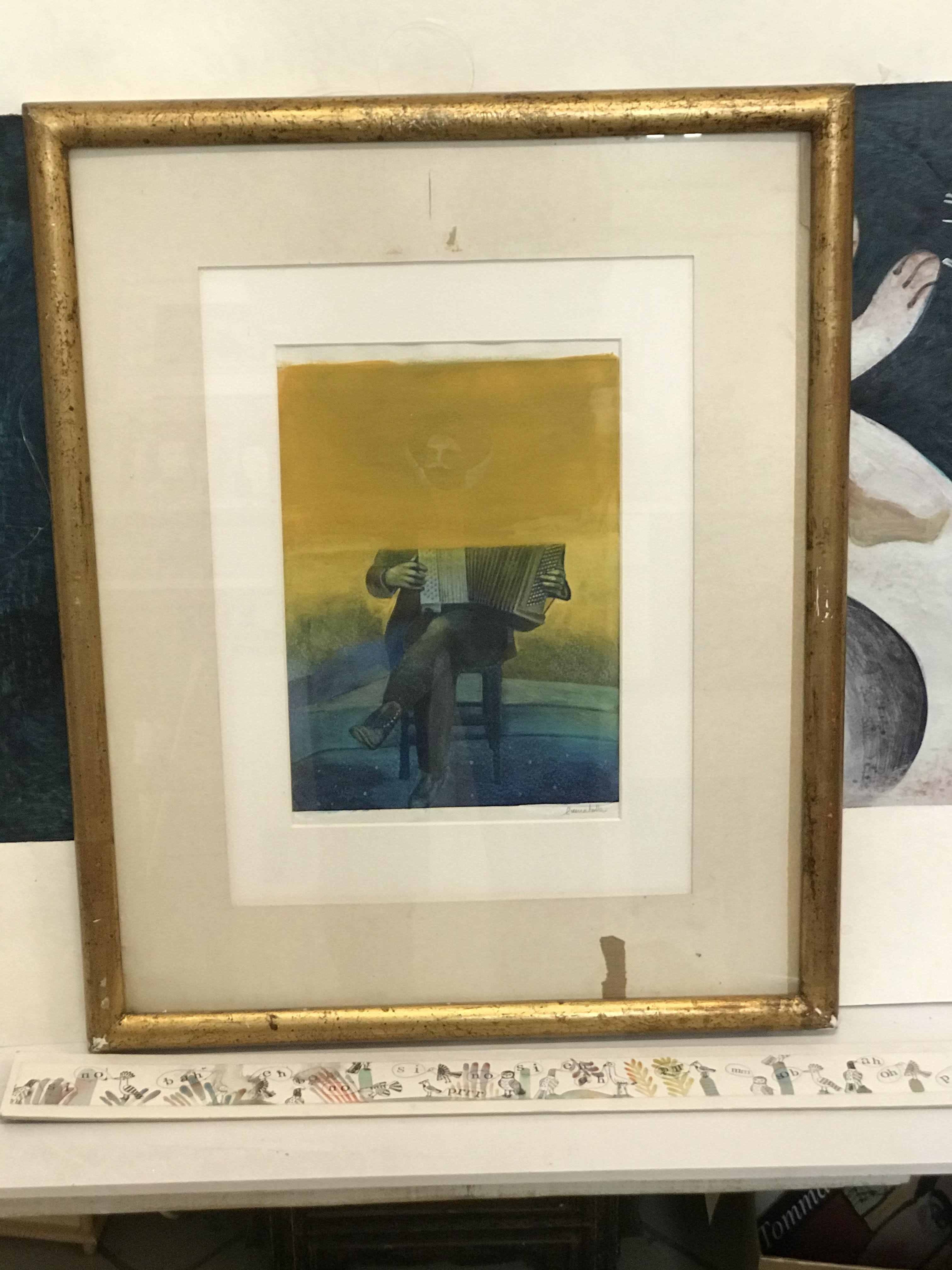 FRANCESCO E IL COCCODRILLO acrilico matite e foglia oro su carta, con cornice 390euro