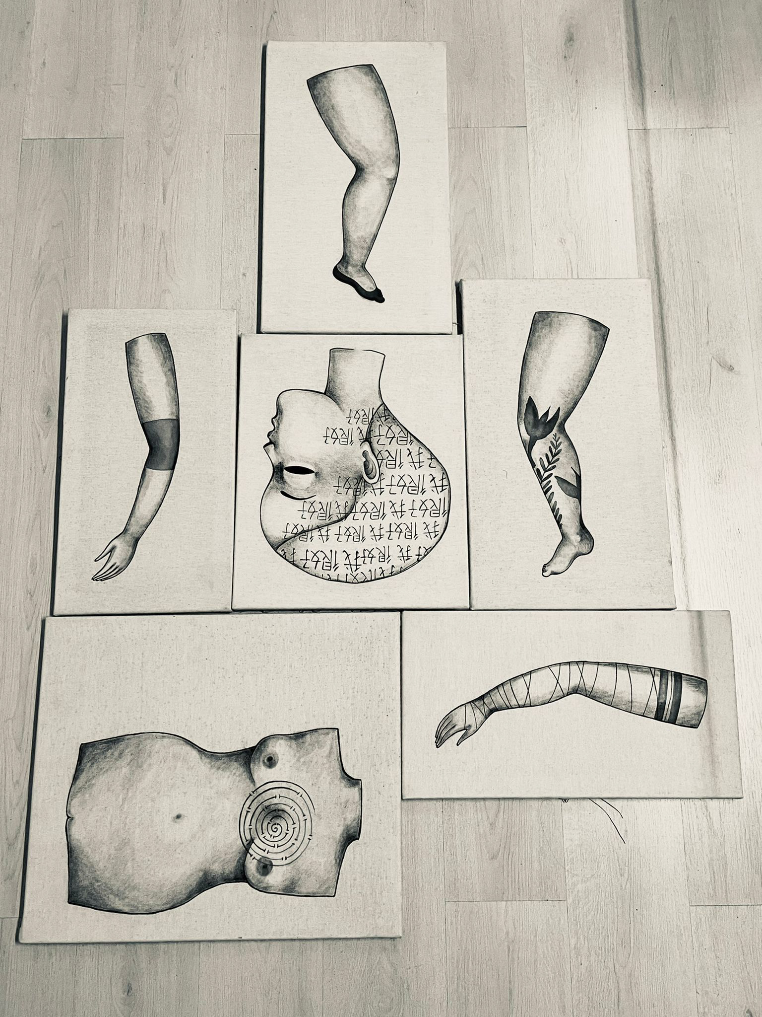 LA CURA , ecoline su carta cotone 100x70cm 1200 euro