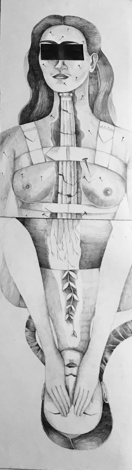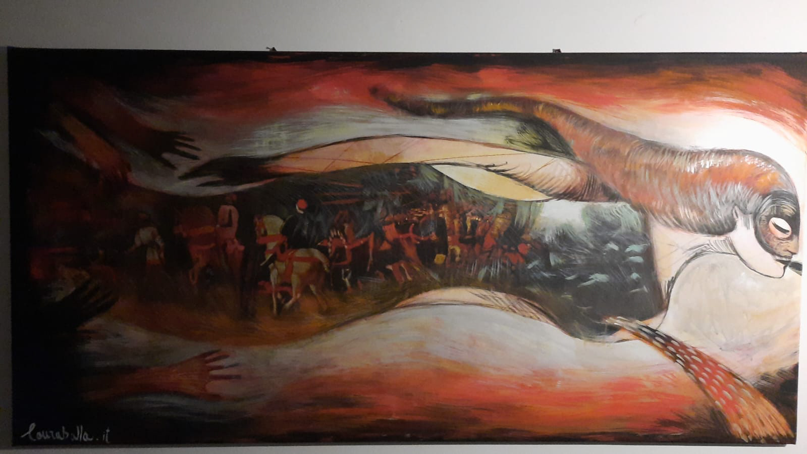 ROSA E I SERPENTI acrilico e pigmento su carta applicata su tavola 100x70 cm